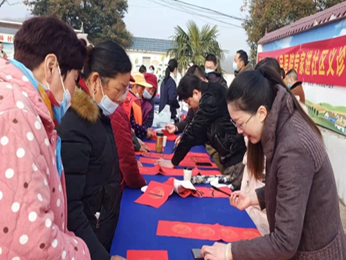 活動(dòng)現場(chǎng),文藝愛(ài)好者們通過(guò)歌舞、快板、配樂(lè )朗誦等形式,宣講黨的十九屆六中全會(huì )和鄉村振興政策,演繹農村群眾對美好生活的祝福和向往;醫生現場(chǎng)為村民提供健康咨詢(xún)服務(wù),積極向村民宣傳健康常識和國家醫保政策,滿(mǎn)足村民的就醫和保健需求;書(shū)法家們凝神聚氣,蘸足筆墨,一幅幅散發(fā)著(zhù)墨香與年味的大紅春聯(lián)與“?!弊置赓M發(fā)放,滿(mǎn)足了村民的文化需求,營(yíng)造了喜慶祥和、積極向上的文化氛圍和節日氣氛。