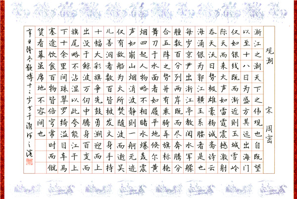 1月25日下午,淮南市舉辦了第七屆“百大杯”中小學(xué)生硬筆書(shū)法邀請賽120名學(xué)生書(shū)法愛(ài)好者現場(chǎng)書(shū)寫(xiě)作品,經(jīng)過(guò)省市知名書(shū)法家評選,共有15名學(xué)生獲得一等獎。“我們舉辦這次活動(dòng),是為了弘揚民族優(yōu)秀文化,展示淮南市青少年學(xué)生硬筆書(shū)法的創(chuàng )作風(fēng)采。”淮南市硬筆書(shū)法協(xié)會(huì )主席熊黎明先生介紹,此次報名參加活動(dòng)的共有近500名學(xué)生,經(jīng)過(guò)嚴格初選,共有120名學(xué)生進(jìn)行現場(chǎng)比賽,參賽學(xué)生年齡最大的15歲,最小的僅有6歲。