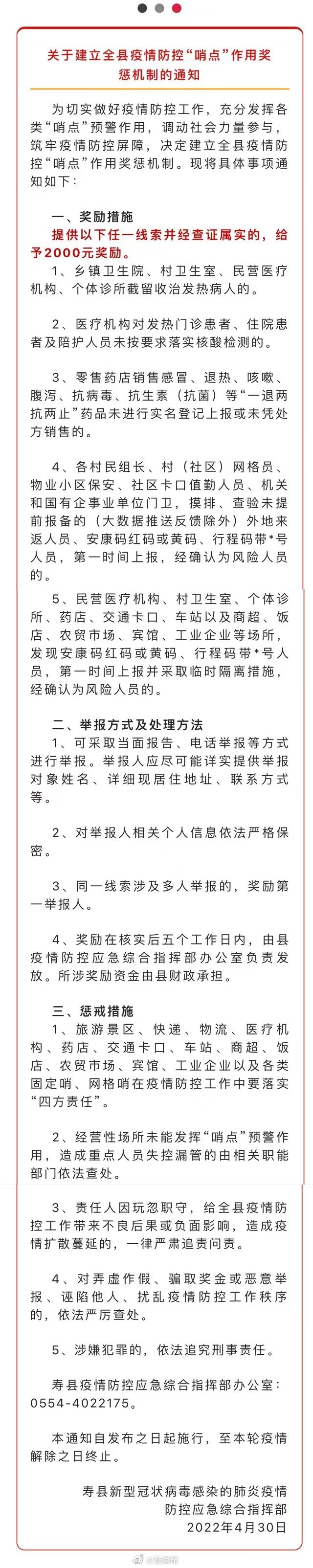 淮南一地發(fā)布提供疫情防控線(xiàn)索舉報有獎的通知