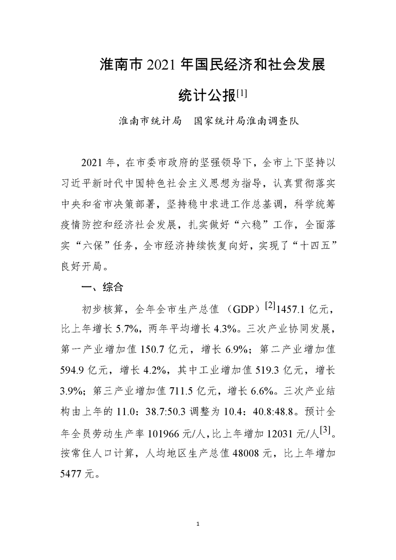 您現在的位置是:首頁(yè) ? 生活萬(wàn)象 ? 淮南生活 ? 淮南生活 淮南市2021年國民經(jīng)濟和社會(huì )發(fā)展統計公報 2022-05-05 09:56:26 閱讀次數:3433 來(lái)源: 市統計局 作者: 舉報 掃描關(guān)注淮南幫微信公眾號,第一時(shí)間獲取淮南幫更新動(dòng)態(tài) 本站內容采集于網(wǎng)絡(luò ),均轉載自政府官網(wǎng)、企事業(yè)單位公開(kāi)發(fā)布的信息及網(wǎng)友提供的信息。均會(huì )注明來(lái)源,版權歸原作者所有,如有侵權請立即與我們聯(lián)系,我們將及時(shí)處理。本網(wǎng)站法律顧問(wèn):孔維釗 律師 本文地址: 技術(shù)支持:淮南智訊網(wǎng)絡(luò ) 上一篇:淮南市5月5日報告新冠肺炎疫情情況 下一篇:淮南市計劃生育家庭特別扶助實(shí)施辦法 相關(guān)文章 淮南推進(jìn)“報表通”應用,助力基層減負 2025年度省市聯(lián)合應急測繪保障演練在淮南成功舉辦 “書(shū)香傳遞,知識共享”——淮南市財政局向市圖書(shū)館捐獻圖書(shū) 【圖說(shuō)淮南】——彩色的秋 ?? 淮南市工信局赴縣區開(kāi)展電動(dòng)自行車(chē)鋰電池健康評估網(wǎng)點(diǎn)建設檢查 淮南市五校聯(lián)合齊探索,AI賦能啟新程 【圖說(shuō)淮南】——冬日 淮南市教體局:適應新形勢新要求 科學(xué)謀劃“十五五”時(shí)期全市中等職業(yè)教育發(fā)展