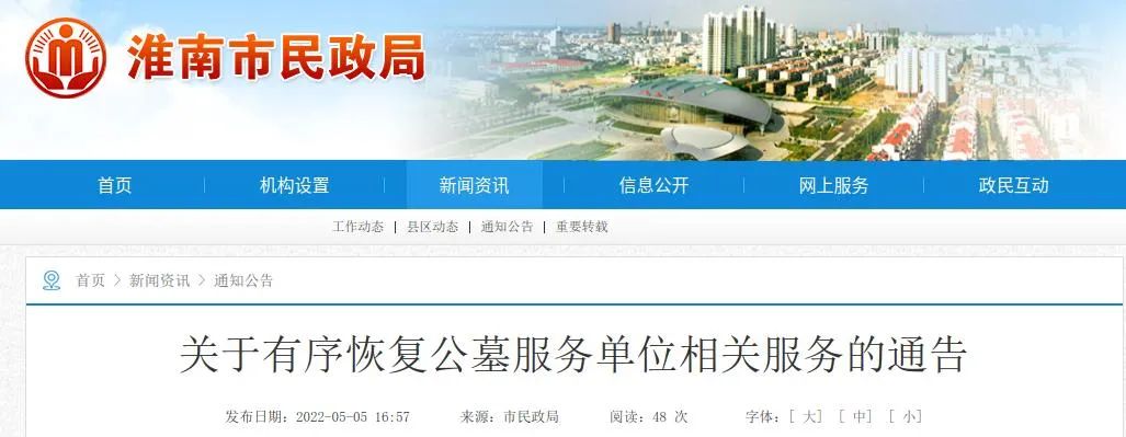 淮南關(guān)于有序恢復公墓服務(wù)單位相關(guān)服務(wù)的通告!