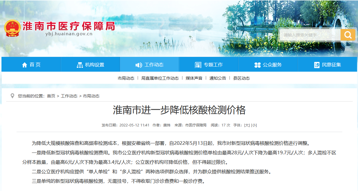 淮南市進(jìn)一步降低核酸檢測價(jià)格
