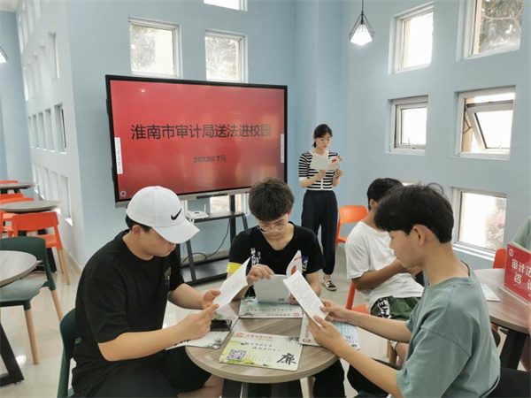 7月5日上午,淮南高新區管委會(huì )綜合法規科一行來(lái)到淮南市職業(yè)教育中心為學(xué)生現場(chǎng)送“法”?;顒?dòng)以面對面交談形式開(kāi)展,圍繞學(xué)生們感興趣的審計問(wèn)題進(jìn)行答疑,如審計的工作內容、審計監督的目標群體、審計職責權限等。同時(shí),我局還向學(xué)生們贈送了審計圖書(shū)、審計圖解、普法禮品等。