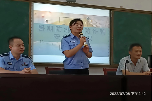 為確保學(xué)生安全度過(guò)暑假,減少溺水事故及受騙上當事件的發(fā)生,切實(shí)提高學(xué)生安全意識和自護自救能力,7月8日下午,淮南九中保衛科開(kāi)設暑期防溺水、防詐騙安全專(zhuān)題教育課,新莊孜派出所民警王培培等同志應邀來(lái)到校園執教授課。