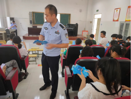 民警同志正在發(fā)放防溺水及防詐騙宣傳冊