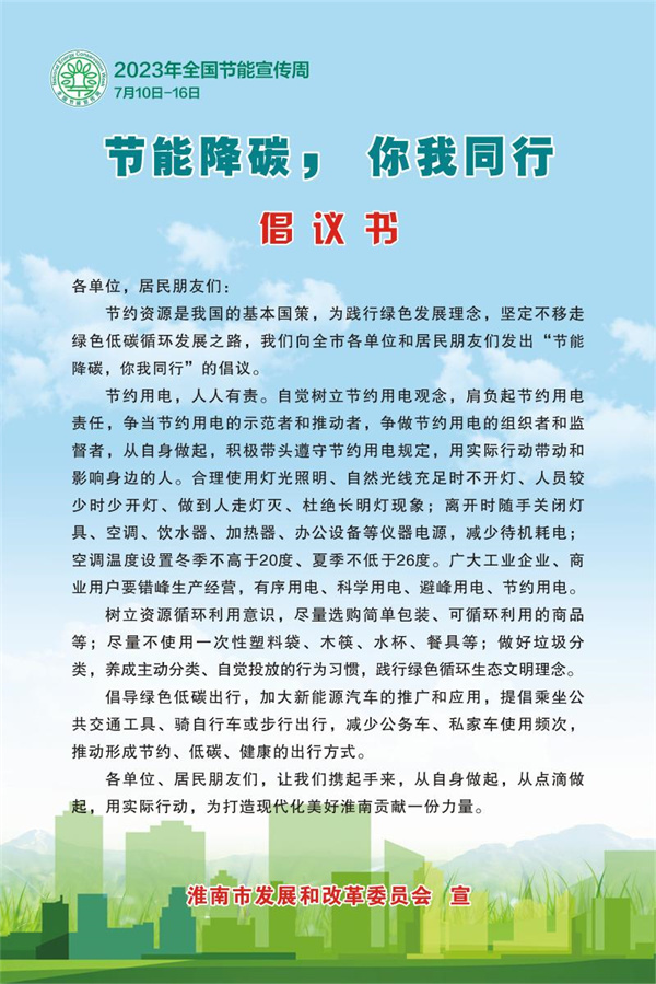 淮南市發(fā)布“節能降碳你我同行”倡議書(shū)