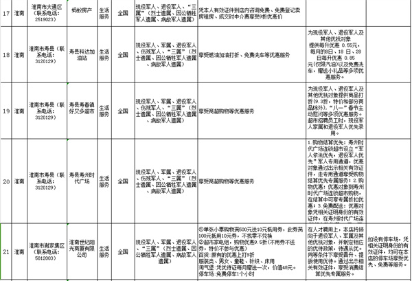附件:淮南市退役軍人其他優(yōu)撫對象優(yōu)待證持證人優(yōu)待目錄清單(第三批)